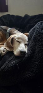 4/9/26 11 years ago, we took in a handsome tall beagle from an owner who had no time for this 2-3 yr old. He was a handful: active and into mischief. lol… well only if it involved food. Wrangler was one of the biggest counter surfers I have ever known. He was clever and could get into all kinds of things. Over the years I have watched Wrangler many times here at Beagletopia. He was struggling recently; he was now just about 14 years of age and became ill. Wrangler crossed over the rainbow bridge. We will miss this handsome devil! We are grateful to his family for giving him an amazing home and family, and we are terribly sorry for their loss. Rest in Peace Wrangler
